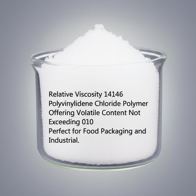 Mật độ hiển nhiên 0,80 Polyvinylidene Chloride PVDC với độ nhớt tương đối 1,41 đến 1,46 và Vinylidene Chloride Chloride còn lại dưới 3 ppm